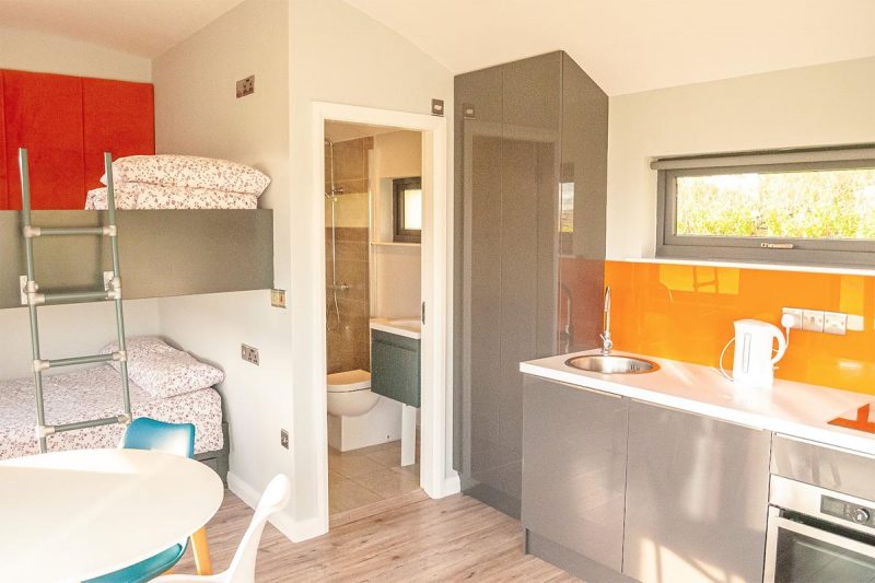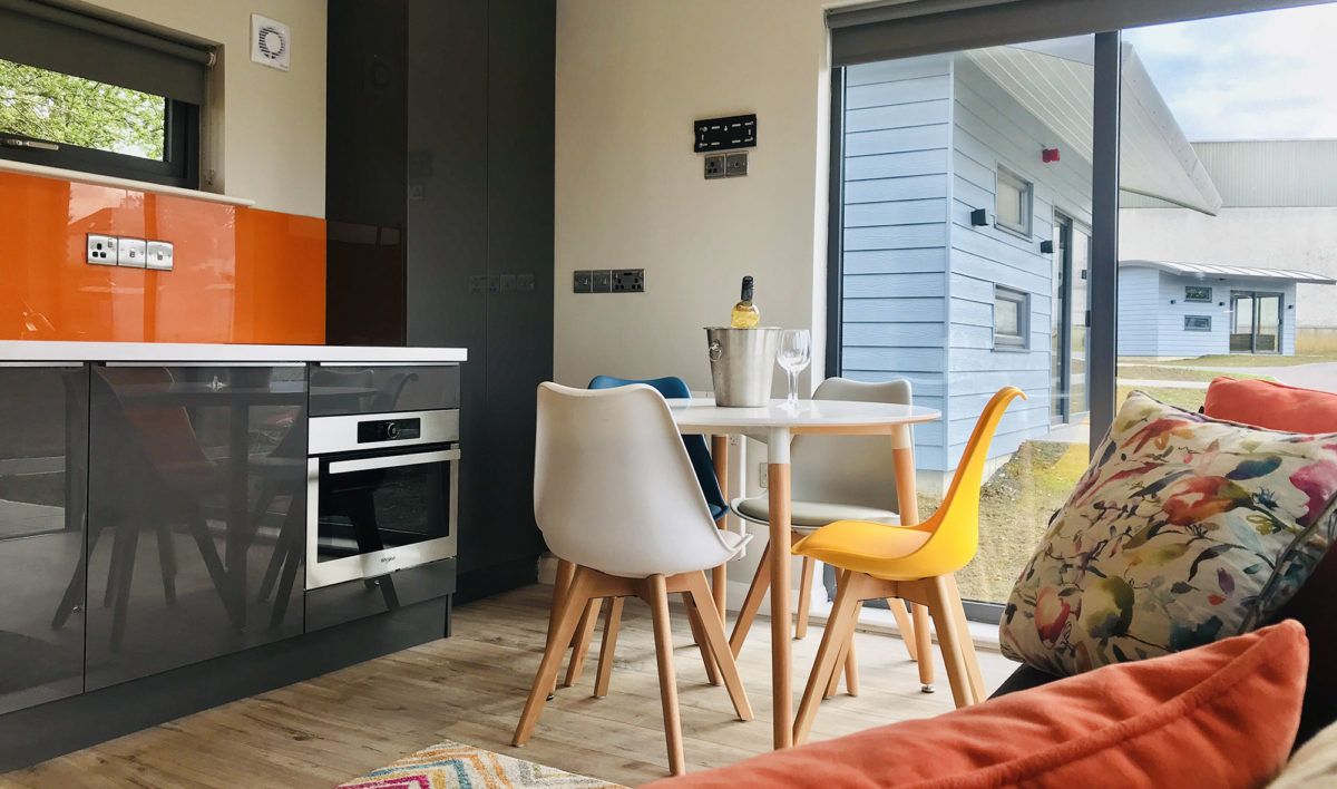 Our luxury villas come with a fully self-contained kitchen, dining area, comfy sofa and outdoor patio overlooking the green – the perfect place to unwind by a fire pit!
