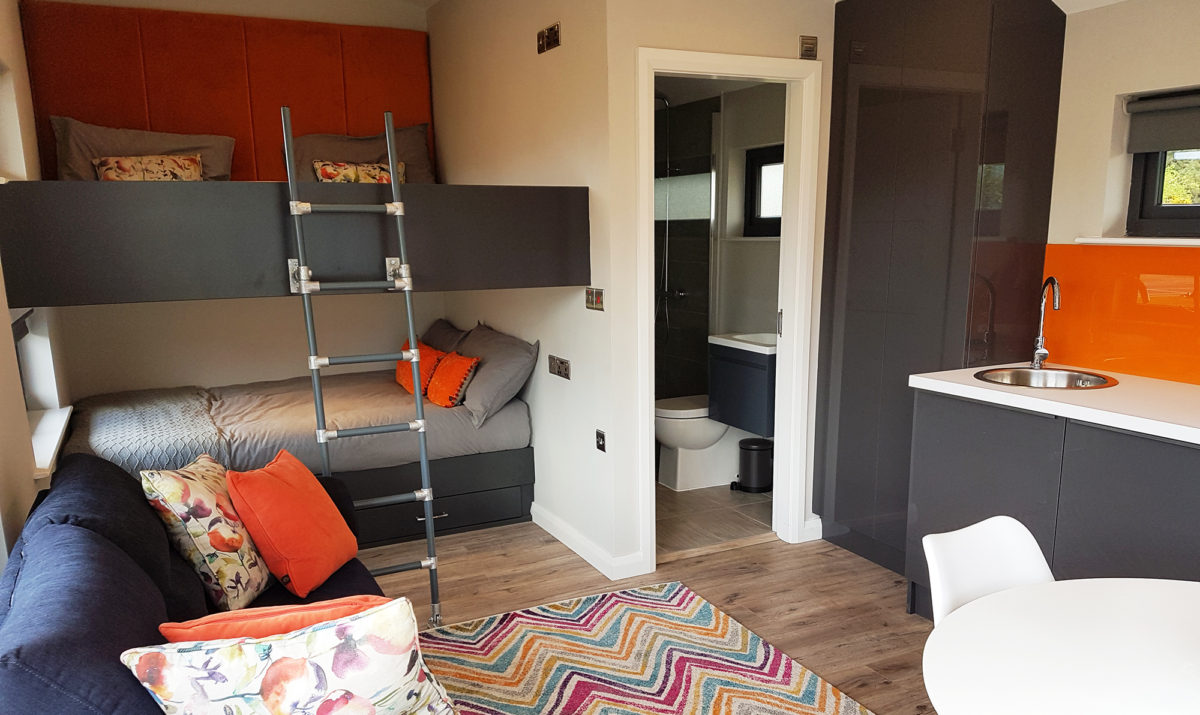 These can sleep up to four people in one double bed with two single beds on a raised platform.